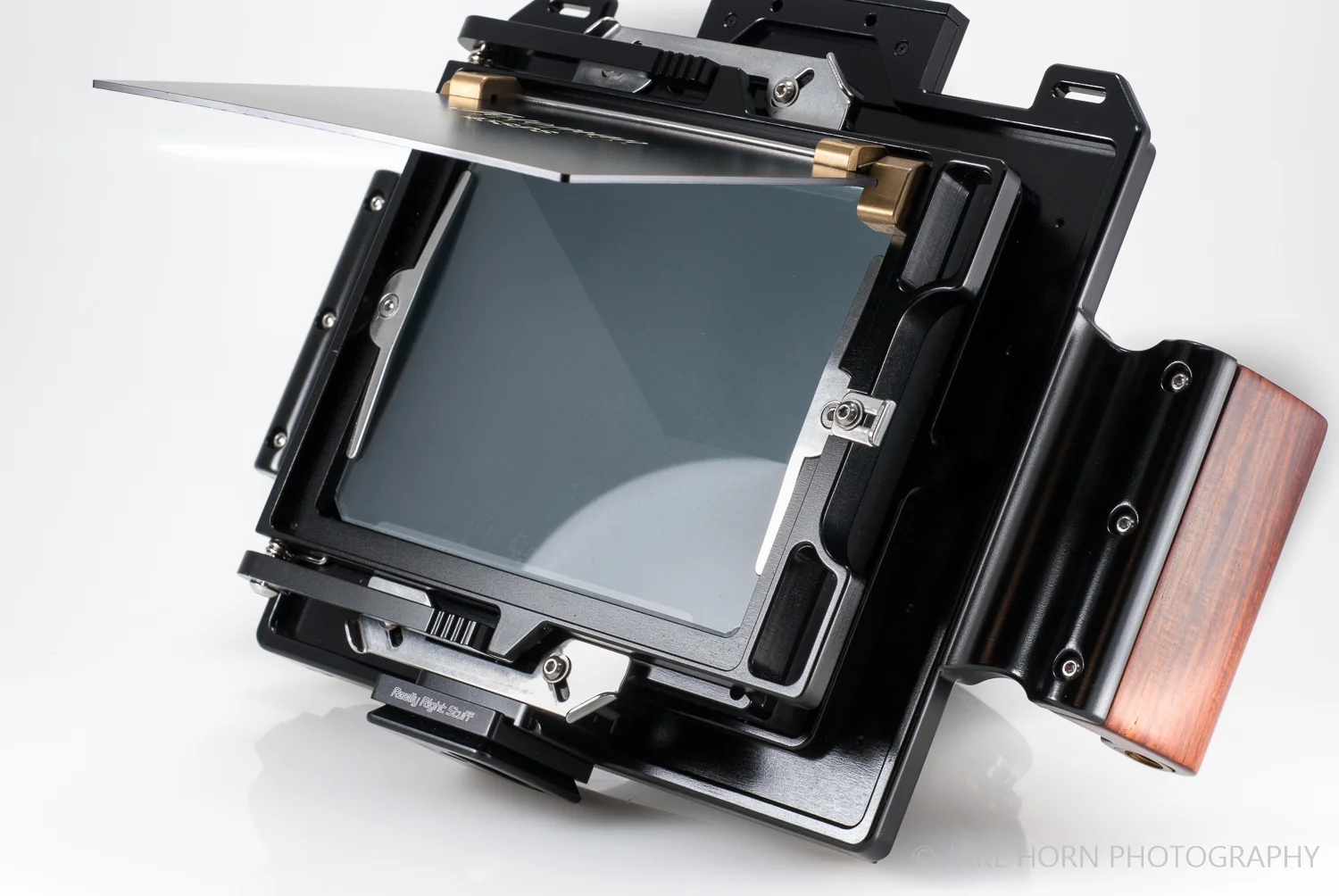 One issue I have with this version of the Fotoman 4x5 is that there is only one cold shoe (centered behind the logo). Point and shoots with multiple cold shoes allow you to use a viewfinder/rangefinder combo for more precise shooting. I have seen some with as many as three, so a light meter can be added as well. It would be nice to use a reflex viewer for this camera, but until I find one, I rely on the ground glass for composition. Fortunately, the flip up shade usually provides enough shielding to allow for image positioning. A dark cloth has been required on only one or two occasions, but I make sure to always have one with me.