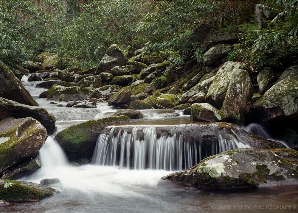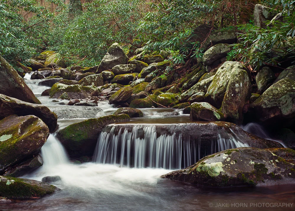 Due to the cost of drum scanning, most people rule it out. But if you capture a truly remarkable photo worthy of printing at 30x40 inches, then only a professional scan will do it justice. I recently got back a handful of negatives that I had drum scanned so that I may update my portfolio. The resolution is of course much better, allowing for big prints, but the tonality of the scans are leaps and bounds better than anything I could have done at home. I'll use my shot of an unnamed waterfall in the Smokey Mountains as an example.